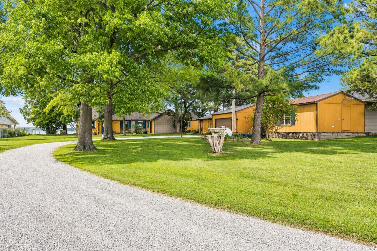 Bluff waterfront property overlooking beautiful Grand Lake! Main home offers 2 bedrooms with private en-suite bathrooms and a 1/2 bath for guests. A chef's dream kitchen offering expansive counter space, abundant prep areas and room to cook and entertain with 2 separate dining areas. Take in those lake views from the covered patio and entertain with a wine/bar area. The home features hardwood and tile flooring, granite counters and windows replaced a few years ago. Separate guest cottage features 1 bdrm/1ba with kitchenette and living area. Three car garage w/workshop, Beautiful landscaped grounds w/garden spot and a gardener's shed. All of this is situated on .67 acres. Close to all area conveniences, marinas, lake access, ATV trails and golf courses. Make this your Grand Lake Retreat!