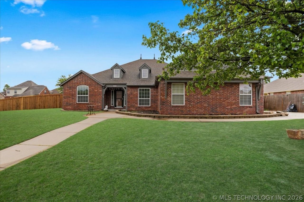 Beautiful home sitting on a large corner lot! This home offers 3 bedrooms, office, and open concept. 3 car garage, large driveway, and fully decked attic with tons of storage space! Charming office has built in bookcase with farm door. Cute covered back porch. Refrigerator and Washer & Dryer will stay! In-ground tornado shelter in the garage. TV in bath will stay. This home is conveniently located in Broken Arrow Hills, near shopping, restaurants, high school and Hwy 51.