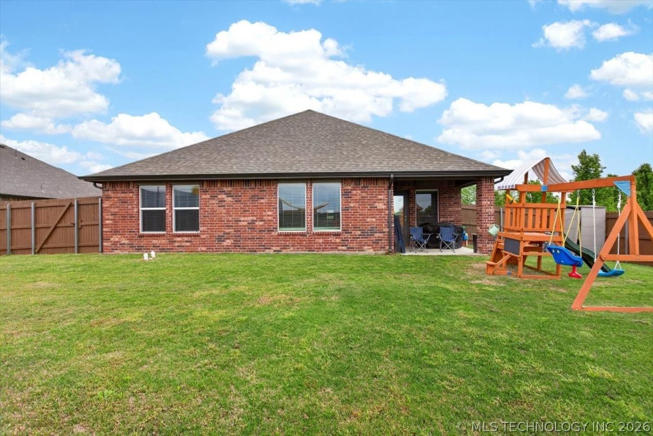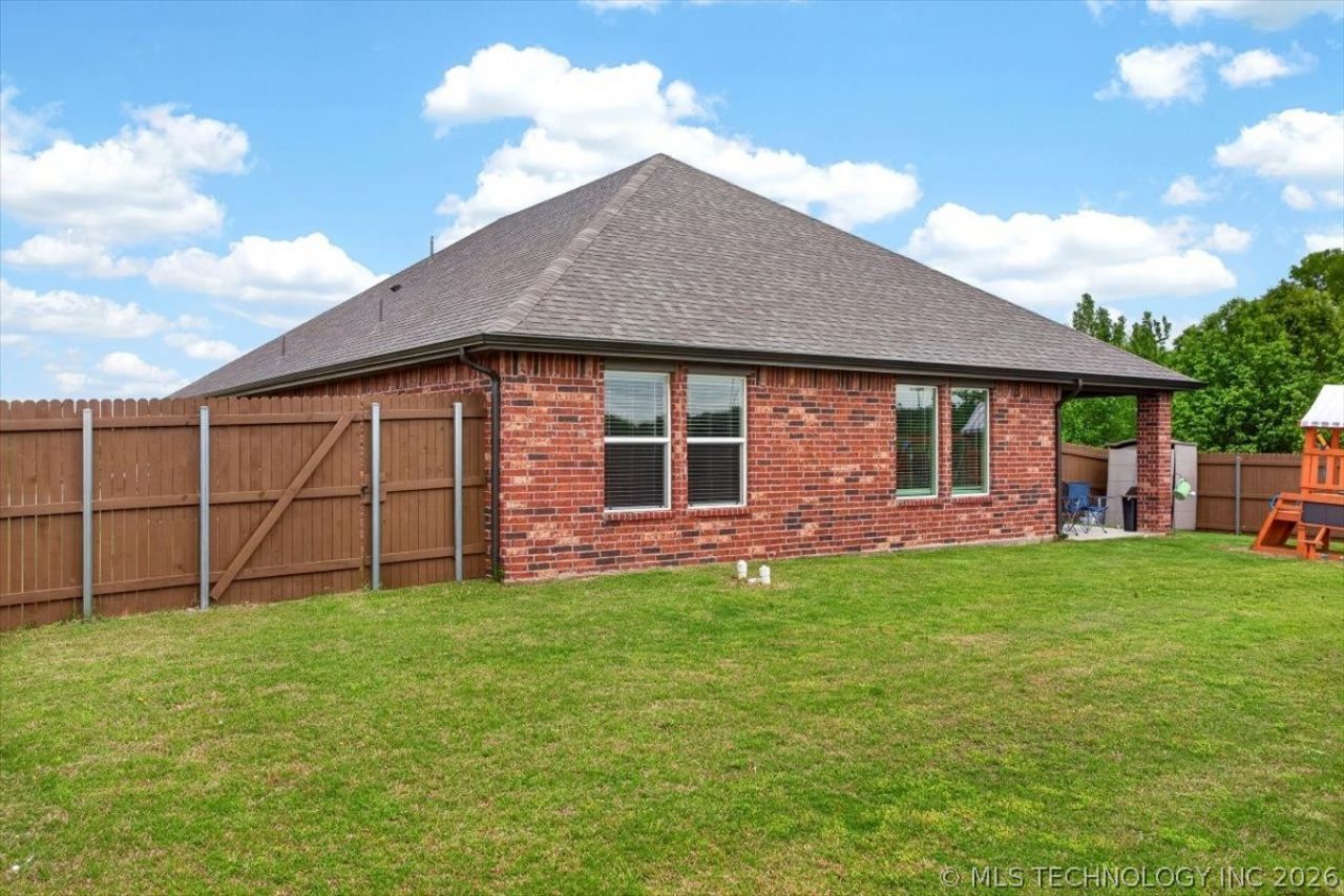Welcome to your dream home in the highly desirable Highland Park Subdivision! This charming 4-bedroom, 2-bath brick home boasts an inviting open floor plan that's perfect for both family gatherings and entertaining friends. Step inside to discover stunning granite countertops and sleek stainless steel appliances in the kitchen, creating a modern and functional space for all your culinary adventures. The living area flows seamlessly, providing a warm and welcoming atmosphere. One of the standout features of this property is the spacious, fully fenced backyard. With a freshly stained fence and no neighbors on the right side, you'll enjoy a sense of privacy while still being part of a vibrant community. It's the ideal spot for kids to play, pets to roam, or for you to unwind after a long day. Location is key, and this home is perfectly situated next to Highland Park Elementary and Oneta Ridge Middle School, making morning drop-offs a breeze. Nestled in a family-friendly neighborhood, you'll find parks, friendly neighbors, and a sense of community right at your doorstep. Don't miss out on this wonderful opportunity to make this house your home!